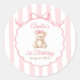 Sticker Rond Teddy Bear Girls Pink Bow Stripes 1st Birthday