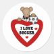 Un ours en peluche, un joueur de football et une conception cardiaque sur les T-shirts, tasses, cartes, sacs fourre-tout et autres objets de football avec le texte "I Love Soccer" !