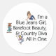 Hé, si vous êtes une fille à triple menace qui aime son jean bleu, marcher pieds nus, et être une pure diva de campagne, alors ce slogan cool est juste pour vous. Je suis une fille aux Jeans bleus, la beauté aux pieds nus, et Country Diva All in One en t-shirts pour l'école, sweatshirts pour la ferme, débardeurs pour la foire du comté, autocollants pour la camionnette, ou affiches pour votre maison.
