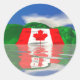 Stickers avec ma conception d'un drapeau canadien reflété sur l'eau, drapé sur des collines vertes.