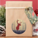 Un autocollant d'anniversaire personnalisé, enregistrer la date etc... avec un style rustique. Conçu avec une tête de cerf aux bois, en plaid rouge. Une image de planches de bois pour l'arrière - plan lui donne un air de pays extérieur. La bordure inférieure a un motif bleu foncé avec des sprigs et des feuilles avec votre texte superposé.