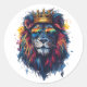 Sticker Rond Tête de lion gras avec lunettes de soleil et couro