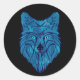 Sticker Rond Tête de loup bleu Poly
