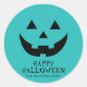 Sticker Rond Texte personnalisé de la Jack-o'-lantern turquoise