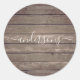 Texture en bois rustique Signature personnalisée Script Sticker rond classique