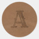 Sticker Rond Texture en cuir Brown Monogramme initial