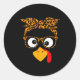 Sticker Rond Thanksgiving Turkey Face Leopard Print Gles Autumn