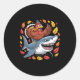 Sticker Rond Thanksgiving Turkey Riding Shark Funny Autumn Boys