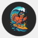 Sticker Rond Thanksgiving Turkey Surfer Surfing