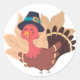 Une Turquie mignonne et heureuse porte un casquette pèlerin pour la fête de Thanksgiving.