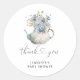 Théière Baby Shower Hortensias Bleus Autocollant Rond Classique