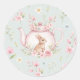 Sticker Rond Théière Lapin Mignon Fleurs Roses Printemps