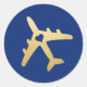 Sticker Rond Thème de voyage en avion doré à cœur EDITABLE COUL