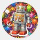 Description at a blast of mechanical fund to any surface with our retro robot sticker sheet. This includes 20 high-quality round stickers each featuring a charming metallic silver tin toy robot standing against a vibrant explosion of colourful paint splatter is the high definition detail and glossy finish make these nostalgic mechanical characters pop with energy perfect for personalising laptop laptops, water bottles notebooks or using as party favours these stickers are a must have for fans of vintage toys and bold