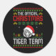 Sticker Rond Tiger Wearing Santa Hat Xmas Lights Merry Christma