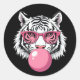 Sticker Rond Tigre Portant des lunettes et soufflant de la gomm