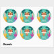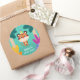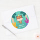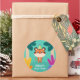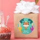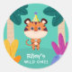 Un tigre mignon dans la jungle tient un cupcake sur ces stickers de fête d'anniversaire Wild One. CORRESPONDRE des articles dans notre magasin.