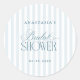 Add a polished finishing touch with this elegant blue stripe bridal shower sticker featuring timeless vertical stripes and classic typography. Perfect for bridal shower favors, gift bag seals, thank you envelope stickers, party cups, or dessert table details, this soft blue and white design complements a something blue theme, preppy bridal shower, or sophisticated country club celebration with a refined, traditional aesthetic.