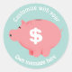 Cartoon tirelire sur autocollants ronds à personnaliser avec votre propre texte. (vous pouvez également customiser la couleur arrière - plan)