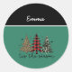 Sticker Rond "Tis the Season" Plaid Leopard Christmas Trees