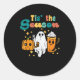 Sticker Rond Tis The Season Pumpkin Latte Retro Halloween Fall