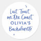 Autocollant de faveur de week-end de bachelorette royal bleu de toast dessiné à la main moderne et fantaisiste toast sur la côte