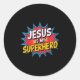 Sticker Rond Toddler Jesus Is My Superhero Christian God Son Br