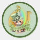 Voici un autocollant amusant de la St. Patrick's Day avec un tomcat orange portant le chapeau haut de leprechaun assis au bout d'un arc-en-ciel dans un fer à cheval doré avec des shamrocks tout autour que vous pouvez utiliser sur les cartes, les cadeaux et les faveurs de fête!