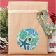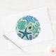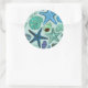 Sticker Rond Tons De Coquillages Bleus Et Motif D'Écre