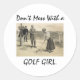 Sortez de son chemin, elle conduit le cours dans le style rétro. Great Golf Girl and Don't Mess Avec un slogan de Golf Girl pour toutes ces filles de golf et leurs amis qui aiment avoir l'air élégant sur le parcours, dans le club-house, ou à la maison. Faites un grand cadeau pour le fan de golf féminin ou le joueur dans votre vie, des débutants aux pros. Vient en version image seulement, aussi, c'est génial pour les gars.
