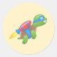 Sticker Rond Tortue volante avec un Jetpack rouge Jaune