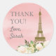 Elégante fête d'anniversaire rose et or avec aquarelle blanche fleurie Tour Eiffel (correspond à notre collection Sweet 16) autocollant "Merci" customisé.