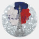 Sticker Rond Tour Eiffel Pailletée Argent Fête Rouge Blanc Bleu
