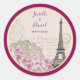 Sticker vintage Tour Eiffel Bourgogne or rose Fleurs Enveloppe Mariage Sceau Classic rond