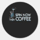 Sticker Rond Tourner Maintenant Puis Coffee Spin Cycler Café