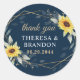 Sticker Rond Tournesol et marine Mariage géométrique bleu Merci