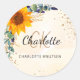 Sticker Rond Tournesol eucalyptus pailleté monogramme