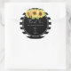 Sticker Rond Tournesol Noir et Blanc Tailles Mariage Faveur