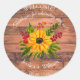 Sticker Rond Tournesol Rustique Floral Aquarelle Mariage bois