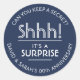 Ajoutez une touche personnalisée élégante pour surprendre les invitations à la fête du 25e anniversaire d'argent, les décorations et les faveurs avec ces stickers modernes bleu marine et gris clair / enveloppes scellés. Design propose une typographie d'inspiration art déco vintage et tendance avec un message personnalisable qui dit "Shhh ! C'est une SURPRISE." En option, la typographie courbe stylisée peut être un nom et une adresse à utiliser comme étiquettes d'adresses rondes modernes chic.