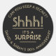Ajoutez une touche personnalisée élégante pour surprendre les invitations à la fête du 50e anniversaire d'or, les décorations, et les faveurs avec ces stickers / enveloppes modernes en noir et or. Design propose une typographie d'inspiration art déco vintage et tendance avec un message personnalisable qui dit "Shhh ! C'est une SURPRISE." Veuillez noter que l'or est imprimé en couleur et non en métal. En option, la typographie courbe stylisée peut être un nom et une adresse à utiliser comme étiquettes d'adresses rondes modernes chic.