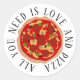 Tout ce dont vous avez besoin c'est d'amour et d'autocollants ronds pizza. Design mignon avec slogan personnalisé. Autocollants ronds modernes personnalisés avec votre texte. Créez vos propres autocollants pour une fête. Autocollants et scellés amusants pour mariage, anniversaire et plus.