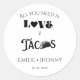 Tout ce dont vous avez besoin, c'est d'amour et de tacos autocollant pour une douche de mariage ou une soirée de dîner de répétition Le design romantique moderne intègre des lettres noires traditionnelles.