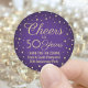 Ajoutez une touche finale personnalisée aux notes de remerciement ou aux faveurs de l'anniversaire de mariage avec des autocollants ronds personnalisés violets et dorés / sceaux d'enveloppe. Le texte de ce modèle, y compris « À 50 ans », est simple à personnaliser pour n'importe quelle année d'anniversaire ou d'anniversaire de naissance. Le design présente une typographie vintage classique, une calligraphie moderne élégante et des points de confettis en faux-foil doré sur un fond ombré violet. Veuillez noter que l'or est une couleur imprimée, pas une feuille métallique. Joyeux Anniversaire et félicitations pour la célébration de cet événement marquant !