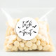 Célébrez Halloween avec cet autocollant amusant et minimaliste avec l'expression Trick ou Treat dans la typographie noir élégant de script entouré de silhouettes de chauve-souris joueuses. Le design simple en noir sur blanc est parfait pour décorer des carnets, des fêtes, des sacs à gâteaux ou tout projet sur le thème de l'Halloween. Une façon élégante et moderne d'ajouter une touche festive à vos créations de saison éffrayante.