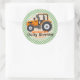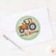 Sticker Rond Tracteur agricole orange mignon; Baby shower vert