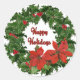 Une couronne de houx très détaillée avec des fleurs de Poinsettia et des baies rouges. Le texte des fêtes dit Joyeux jours fériés.