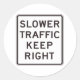 Ce panneau indique que le trafic plus lent devrait rester droit. Le panneau est écrit en noir et dit que le trafic plus lent reste droit. Il y a une bordure noire autour du panneau. Ce panneau de droite, plus lent, est très agréable