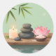 Tranquil Reflection round sticker featuring peaceful spa-inspired imagery with calming elements and gentle balance. Printed on glossy white paper for vibrant color and a smooth finish. Perfect for planners, journals, scrapbooks, gift wrapping, and everyday decorating. A soothing design that brings relaxation and mindfulness to your favorite surfaces.