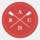 Bouton rouge et blanc intelligent pour une tondeuse, cela vous permet d'entrer quatre parties initiales. Le design présente des barres croisées avec un double cercle blanc "cousu" autour d'elles, sur un arrière - plan rouge.